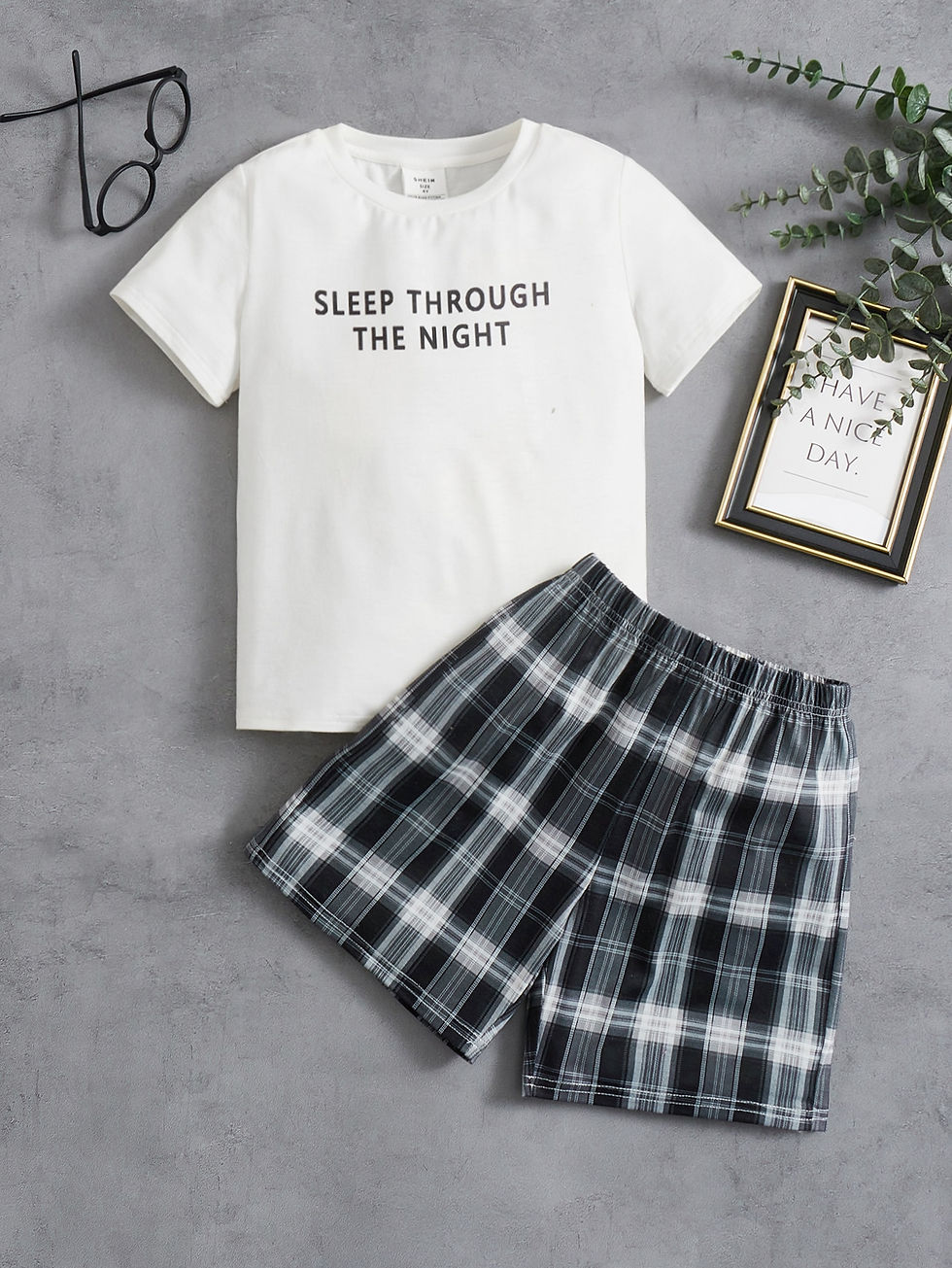 طقم بيجامة بجرافيك شعار ومربع النقش ولد