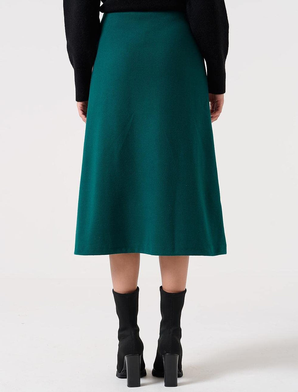 تنورة ميدي محبوكة بخصر مرتفع باللون الأخضر الداكن من جيمي كي