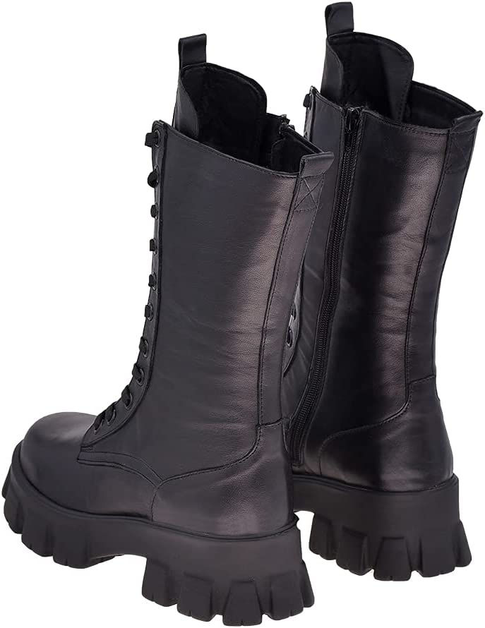 حذاء بوت نسائي أسود بتصميم خاص من الجلد الطبيعي